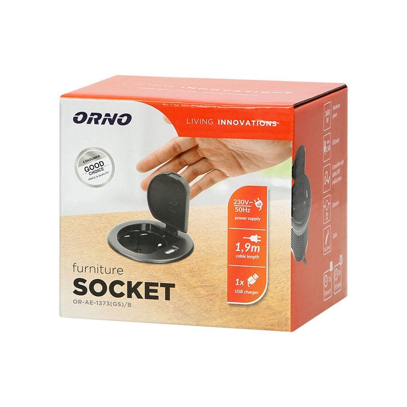 Redpoint 1373 ΧΩΝΕΥΤΗ ΠΡΙΖΑ ΓΡΑΦΕΙΟΥ ΣΟΥΚΟ ΚΑΠΑΚΙ+1 USB 5V 2.4A ΜΕ 1,8m ΚΑΛΩΔΙΟ ΜΕ ΦΙΣ 70/85 (Φ60) ΜΑΥΡΗ ORNO