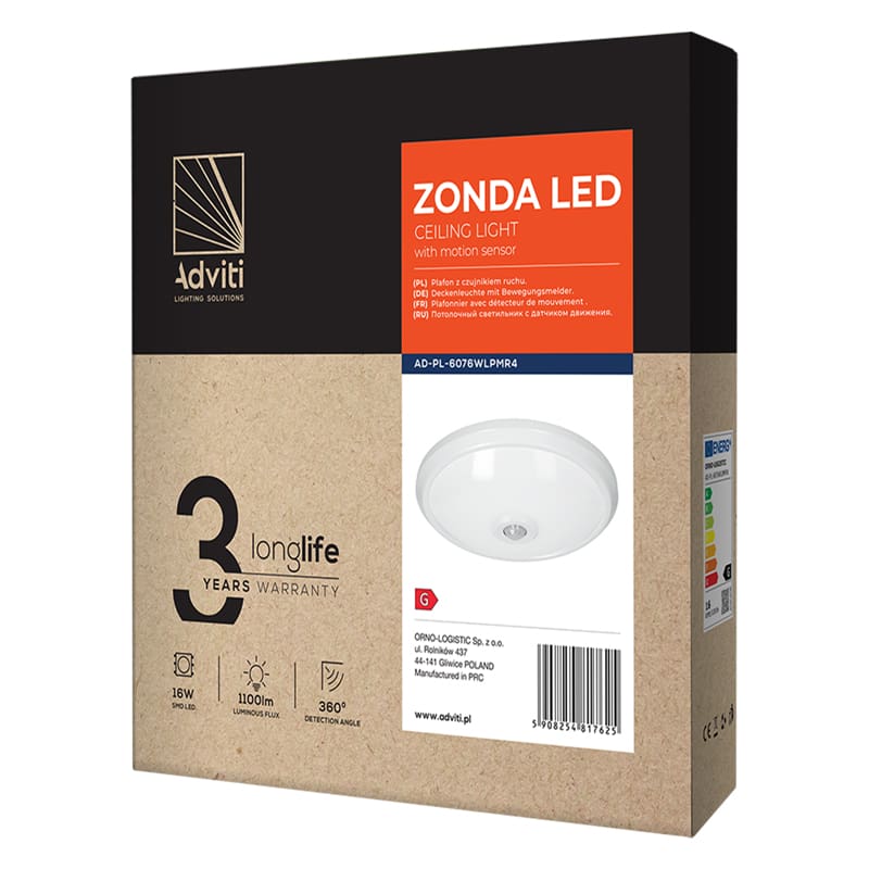 Redpoint 6076 ZONDA ΦΩΤΙΣΤΙΚΟ LED ΣΤΡΟΓΓΥΛΟ ΛΕΥΚΟ Φ290/67 ΜΕ ΑΝΙΧΝΕΥΤΗ ΚΙΝΗΣΗΣ 16W 4000K ORNO