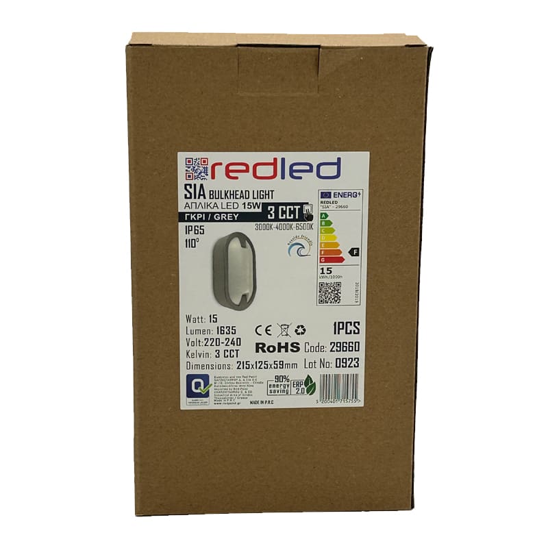 Redpoint “SIA” ΑΠΛΙΚΑ LED 15W ΟΒΑΛ ΜΕ ΕΣΟΧΗ ΓΚΡΙ 3 CCT IP65 (κατασκευή Κίνα)