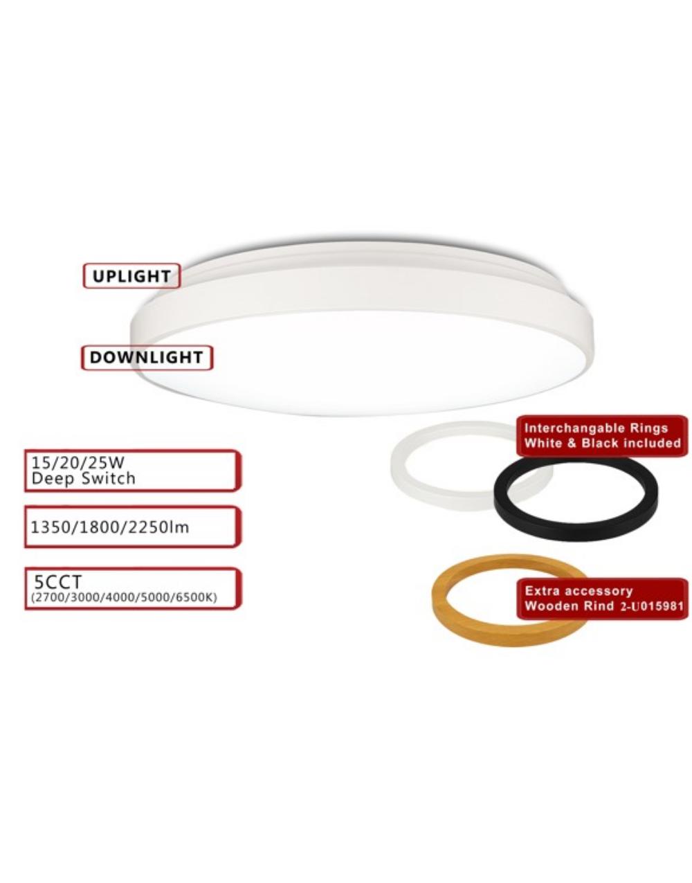 Διαθέτει βαθμό στεγανότητας IP44. Στην συσκευασία περιέχεται το λευκό και μαύρο δαχτυλίδι.