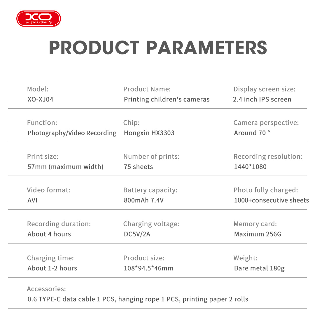 XJ04 Μπροστινή και Πίσω Παιδική Κάμερα Εκτύπωσης