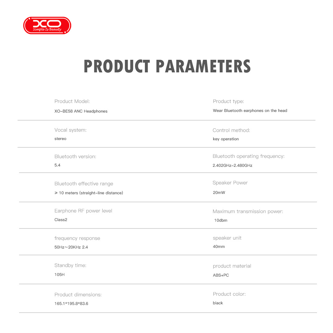 XO BE58 Ακουστικά Κεφαλής Lighty ANC