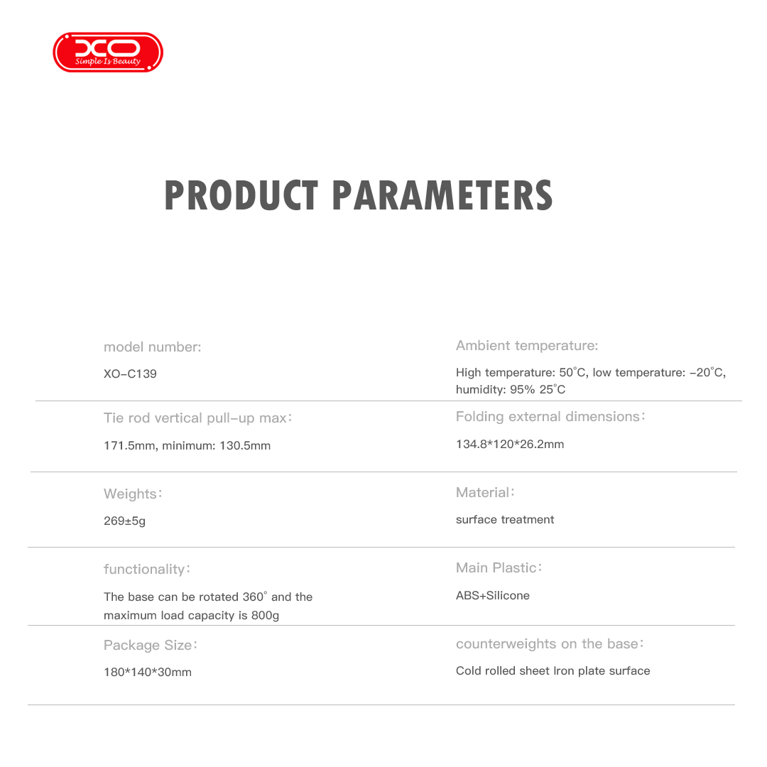 XO C139 Επιτραπέζια Περιστρεφόμενη 360° Μεταλλική Βάση Κινητού
