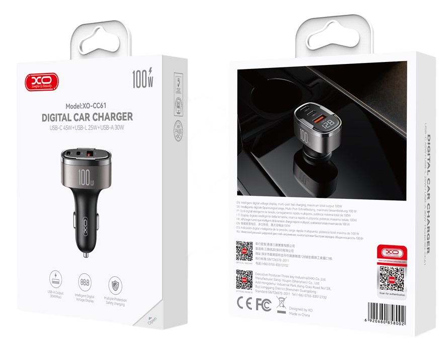 XO CC61 100W Smart Φορτιστής Αυτοκινήτου με Έξοδο Lightning