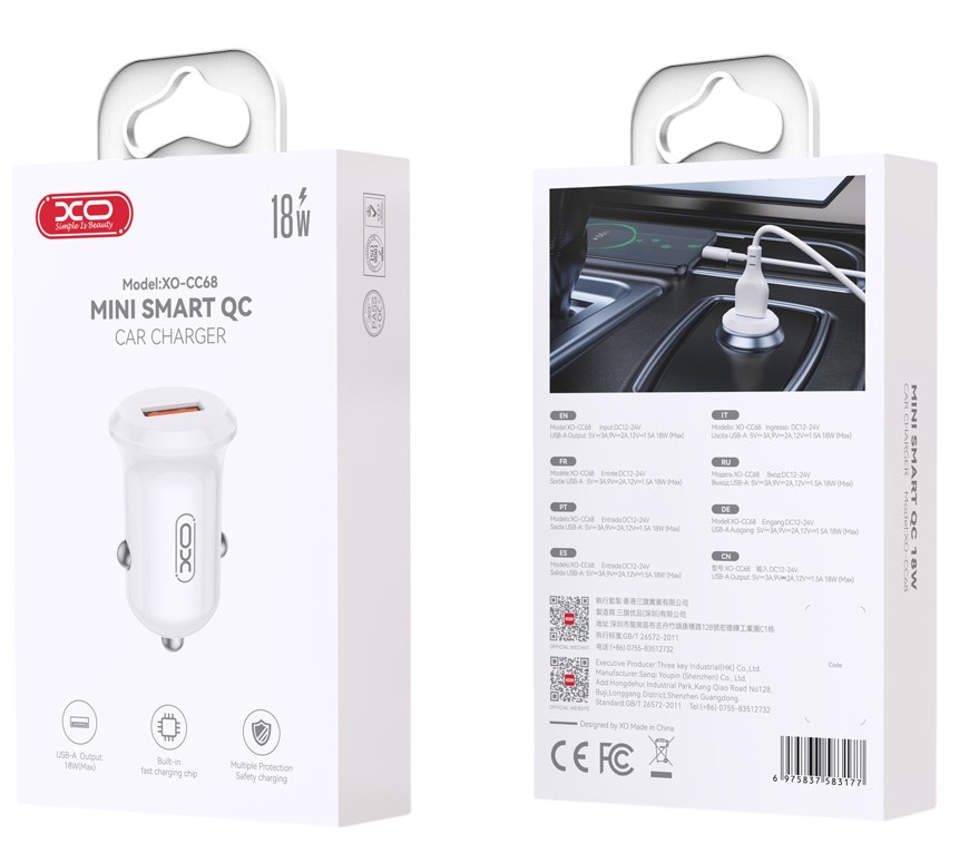 XO CC68 Mini Smart Single Φορτιστής Aυτοκινήτου QC18W