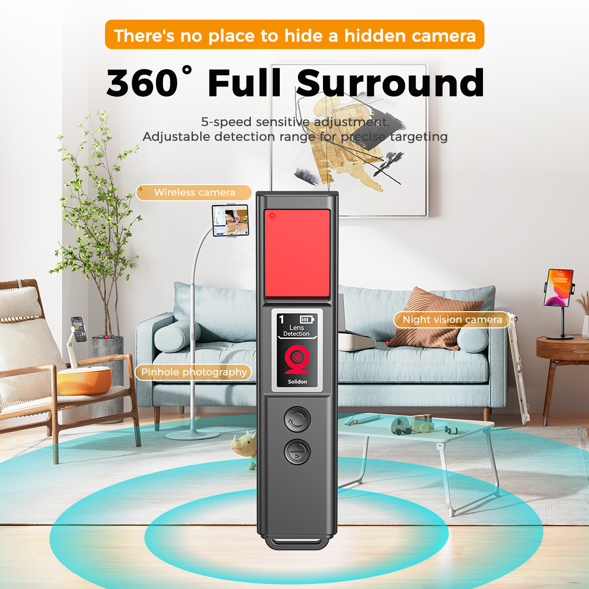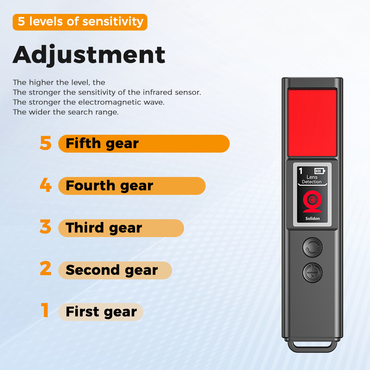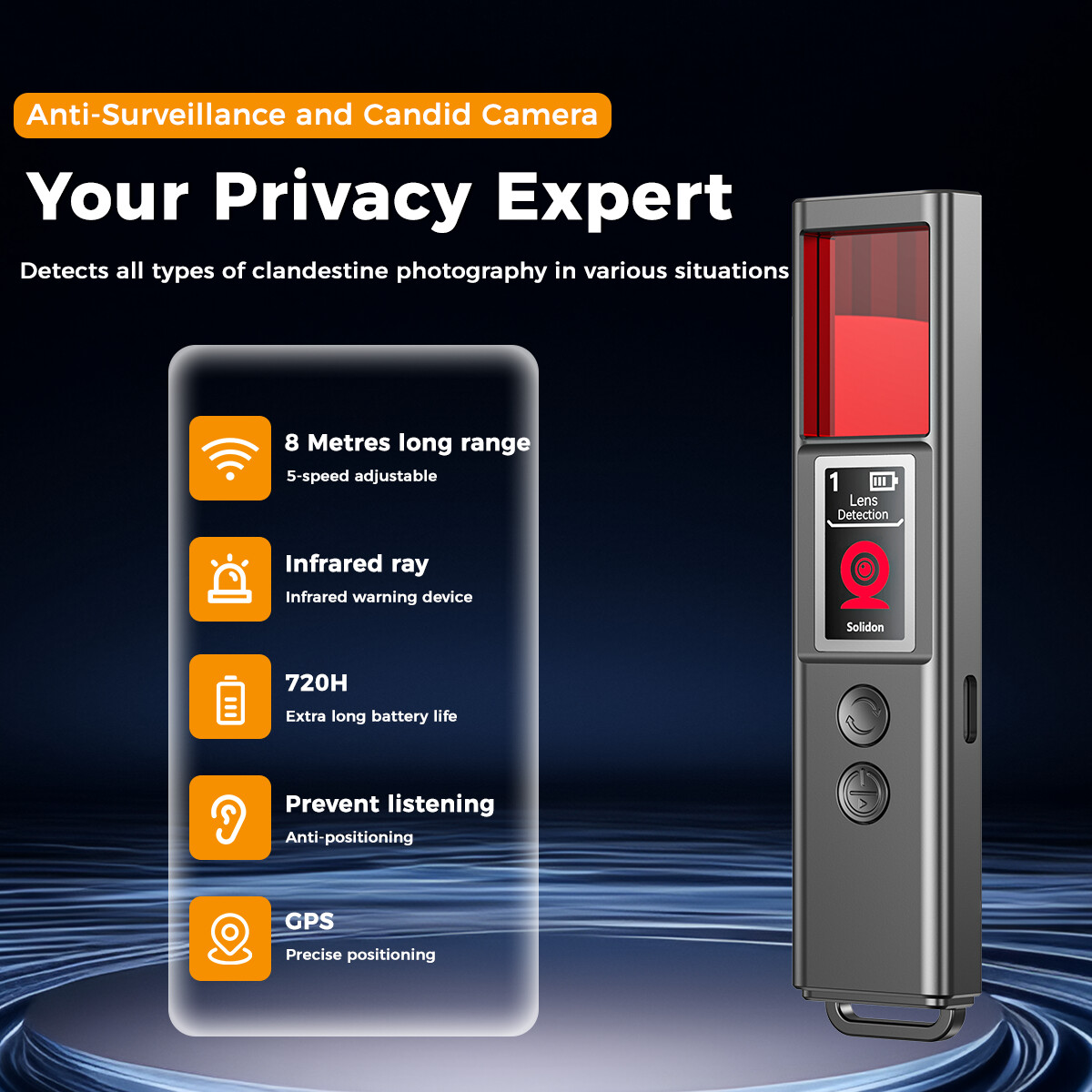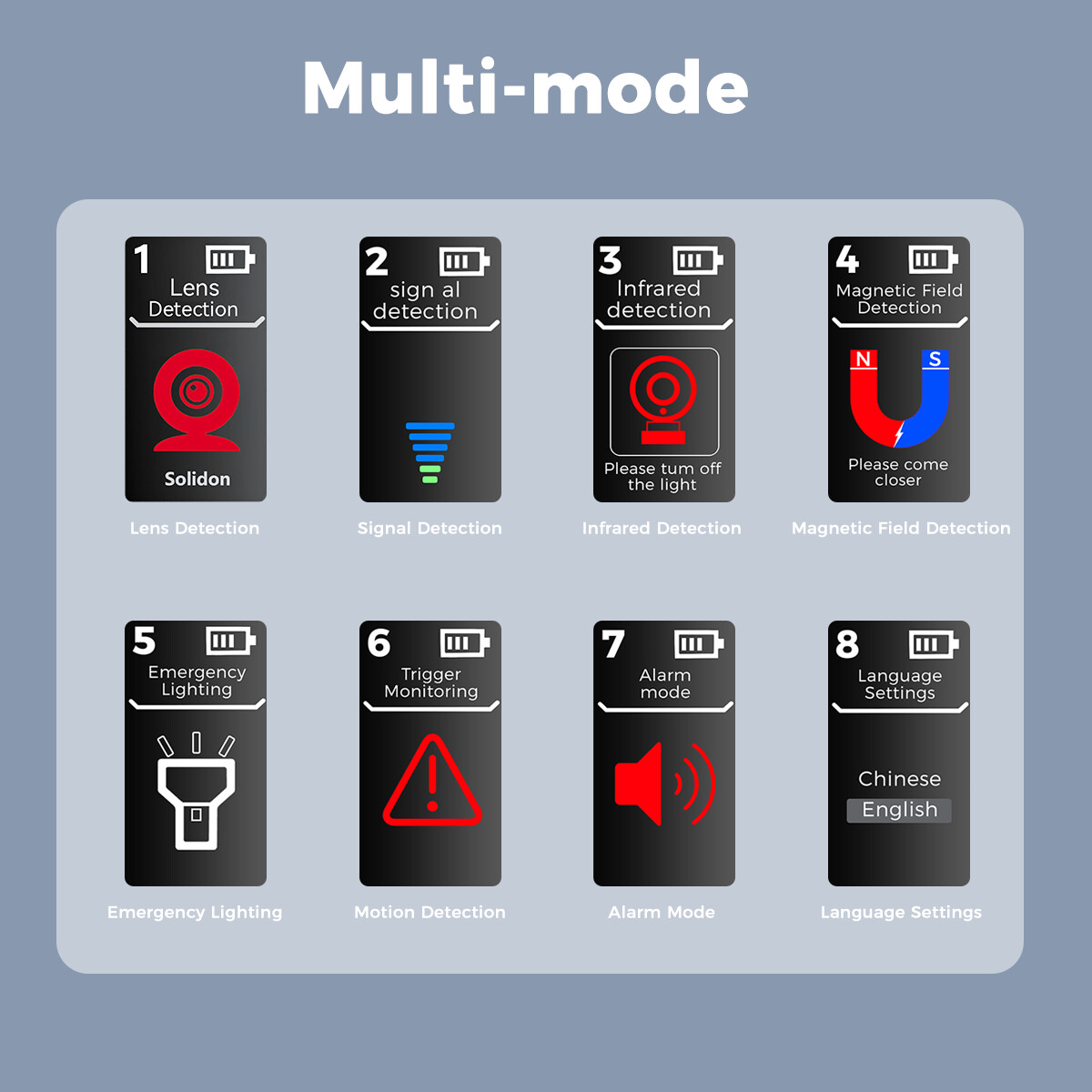 Ενδείξεις φωτισμού: Κόκκινο φως (ανίχνευση κρυφής κάμερας), λευκό φως (φακός)