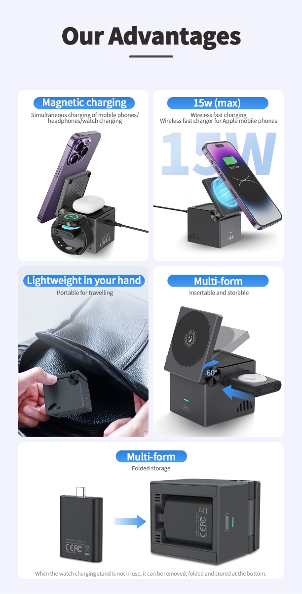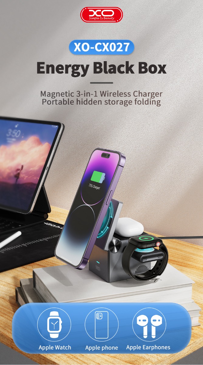 XO CX027 Κινητό /Apple Watch/ TWS 3-σε-1 Ασύρματος φορτιστής 15W