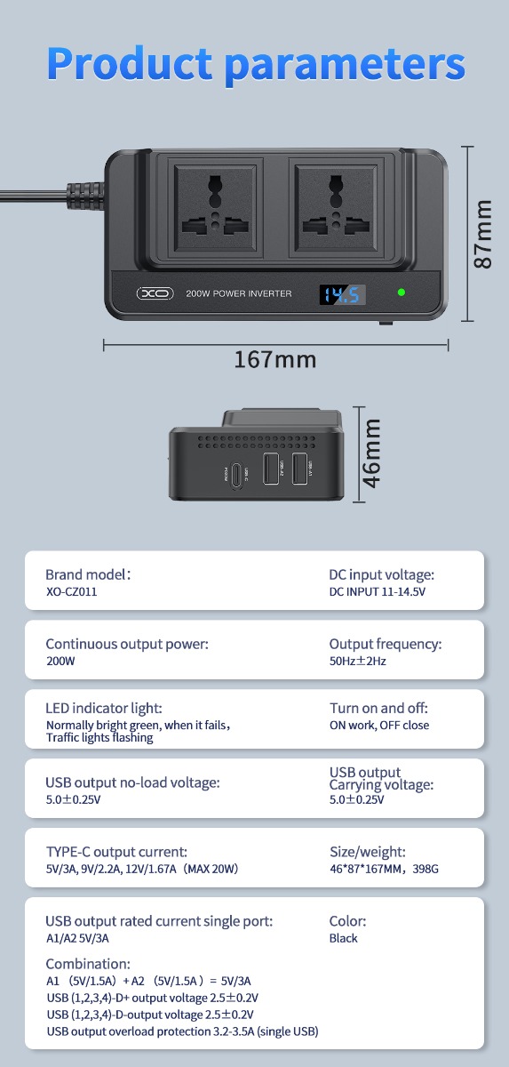 - Μονή Ονομαστική θύρα ρεύματος εξόδου USB: A1/A2 5V/3A