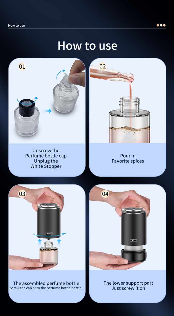• Λειτουργία προϊόντος: Τρία επίπεδα ψεκασμού (ελαφρύ άρωμα, μέτριο άρωμα, δυνατό άρωμα)