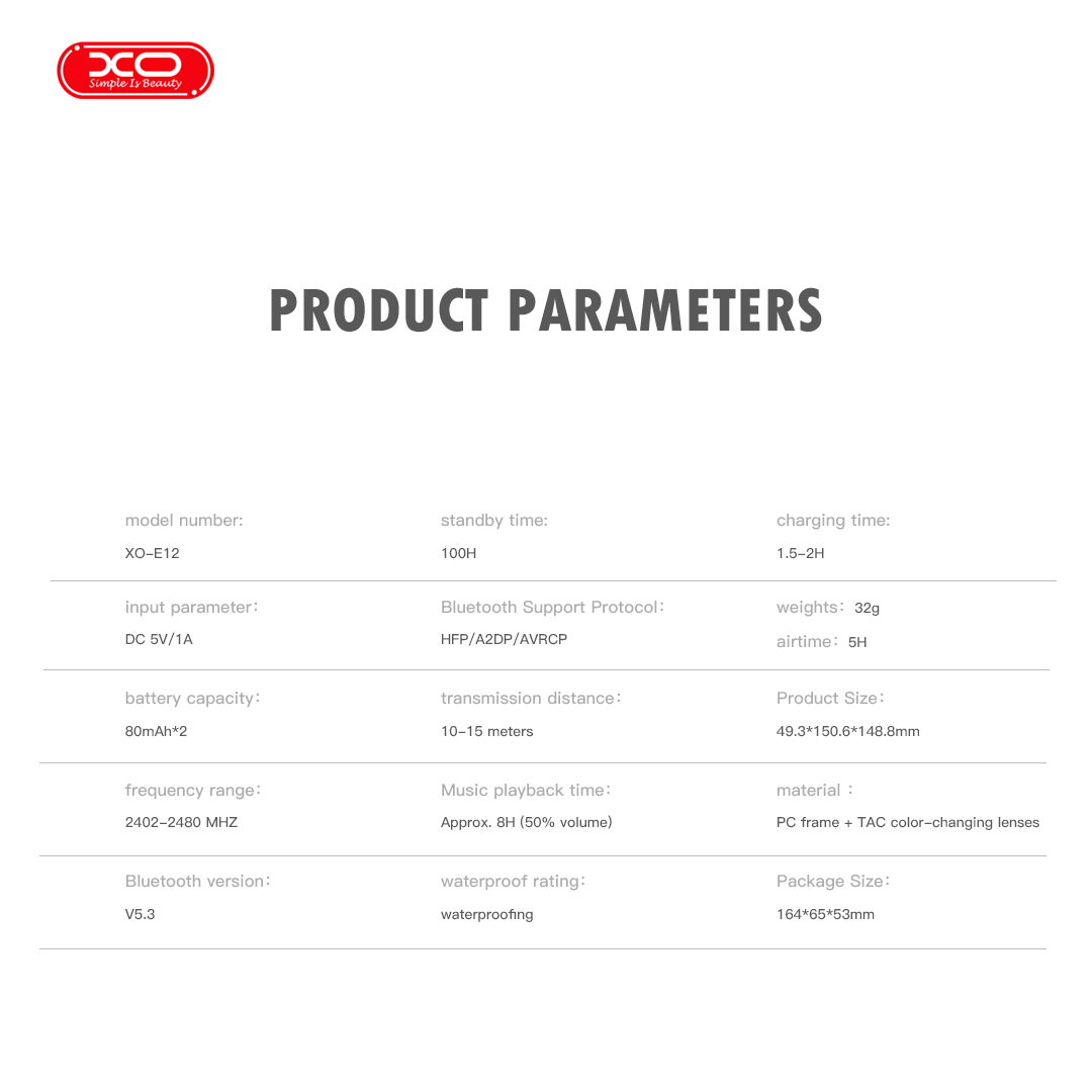 XO E12 Smart Audio Γυαλία με Προστασία από Μπλε Φως Οθόνης