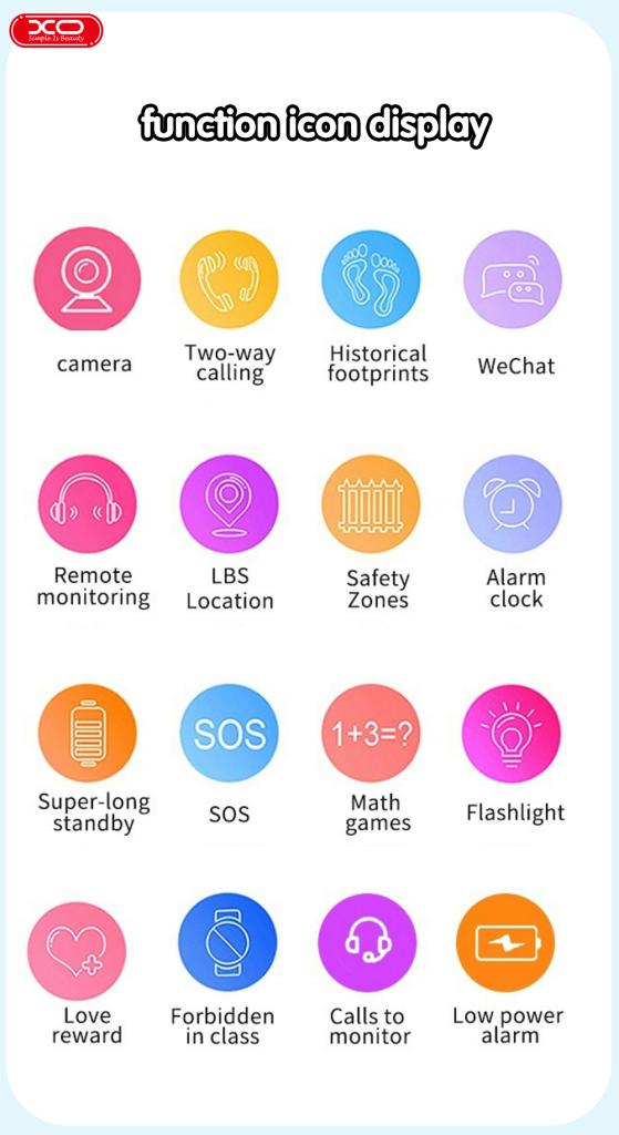 Λειτουργία: τοποθέτηση σταθμού βάσης, πλατφόρμα εξυπηρέτησης κινητού πελάτη, λειτουργία διπλού ελέγχου, τηλεφωνικός κατάλογος, ενδοεπικοινωνία, αποτύπωμα, ξυπνητήρι ρολογιού, ασφαλής περιοχή, συναγερμός έκτακτης ανάγκης SOS, συναγερμός χαμηλής μπαταρίας, πρόβλεψη καιρού, απομακρυσμένος τερματισμός λειτουργίας, φωτισμός, Παιχνίδι, κάμερα, άλμπουμ φωτογραφιών, θέμα, χρονόμετρο, αυτόνομο καντράν