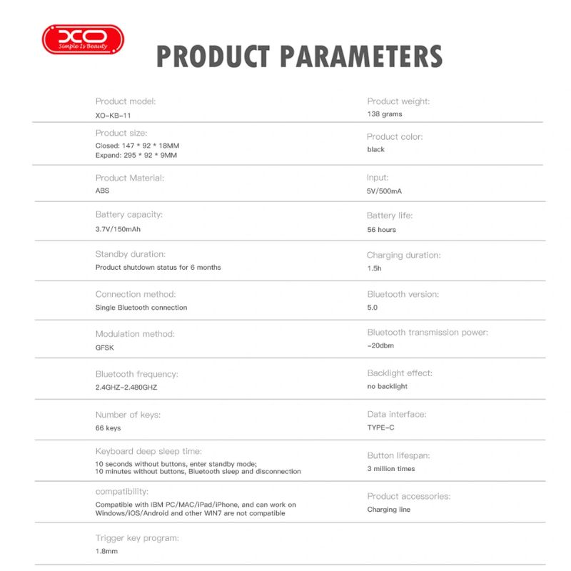 XO KB-11 Ασύρματο Πτυσσόμενο Πληκτρολόγιο