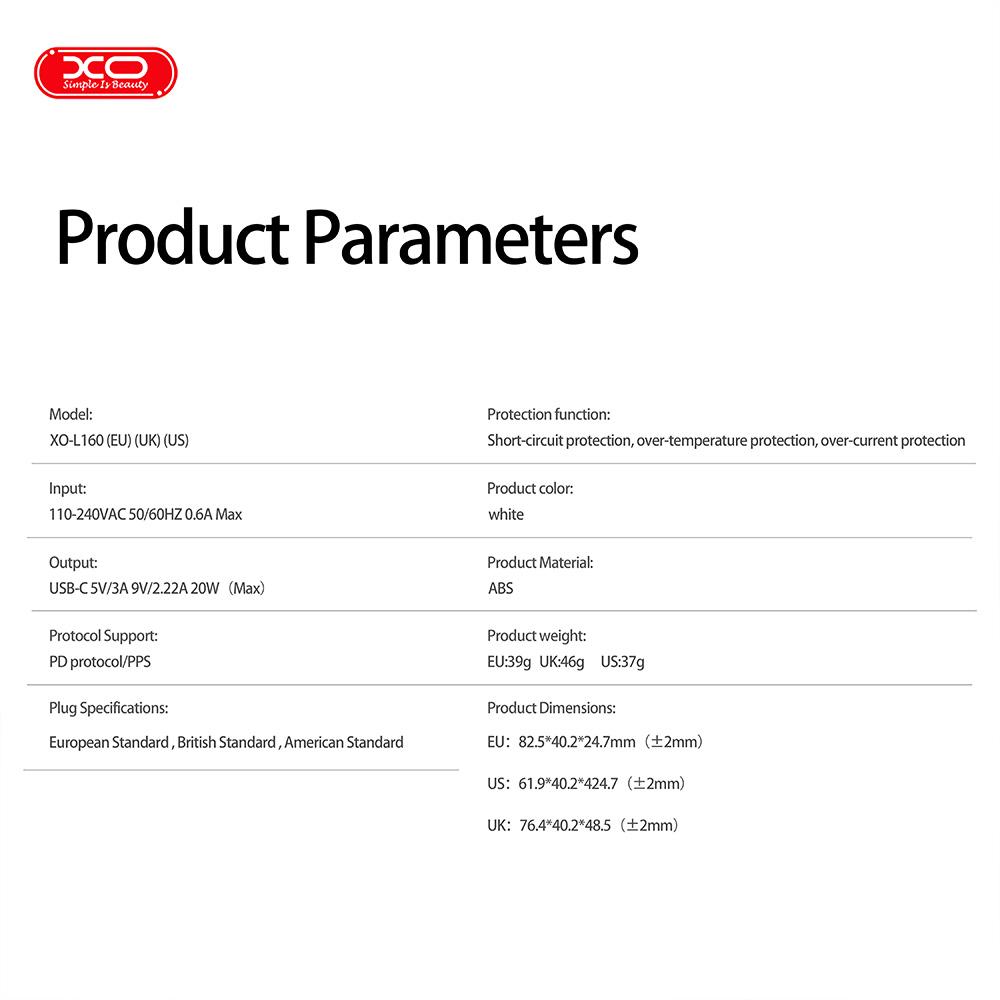 XO L160 (EU) Φορτιστής Ταχείας Φόρτισης με Θύρα Type-C & Καλώδιο Lighting 20W Kit (NB300)