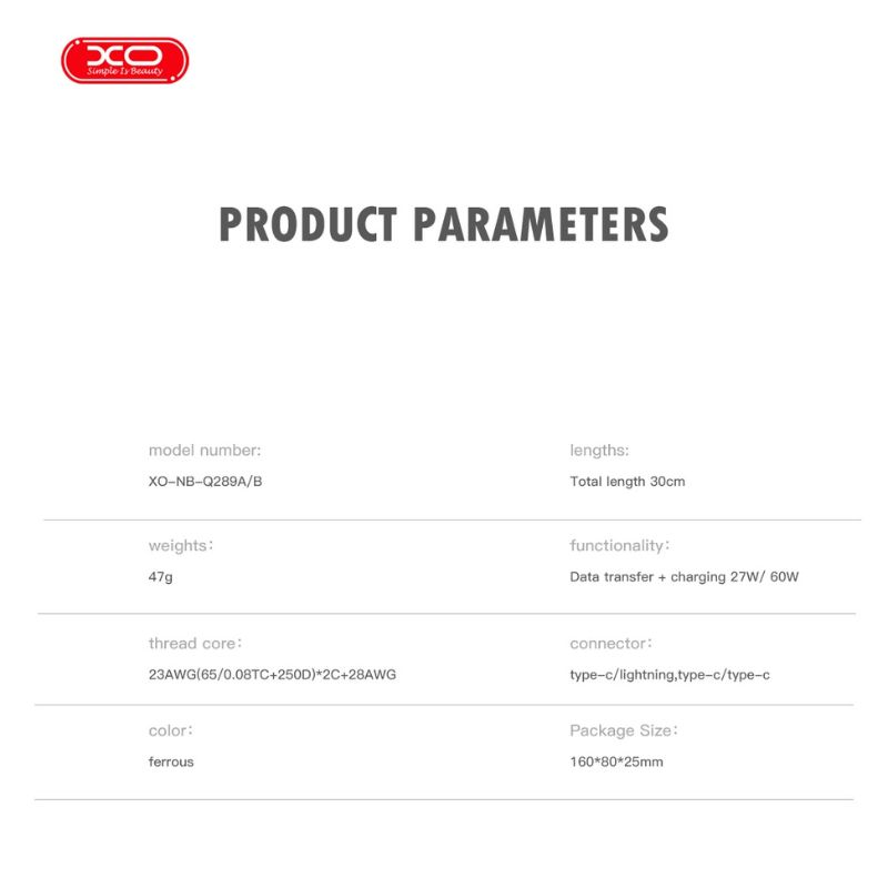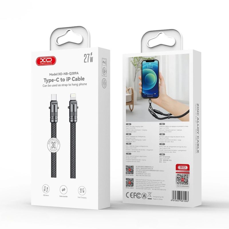 XO NB-Q289A Charging & Data Cable Type-C to Lighting 27W Black 20cm