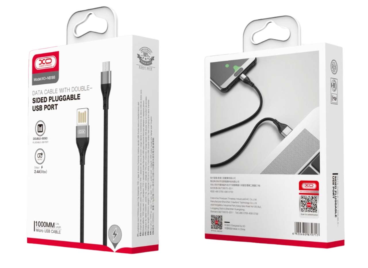 XO NB188 2.4A Διπλής Φοράς Φόρτιση USB Micro 1m Γκρί