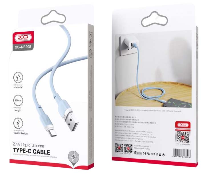 XO NB208 Καλώδιο Φόρτισης + Data TypeC 1m Μπλέ