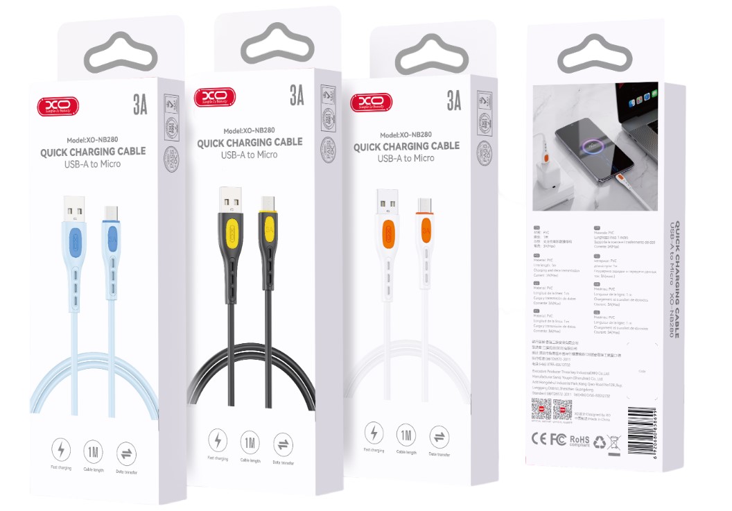 XO NB280 Καλώδιο Δεδομένων Micro 1M 3A Μαύρο