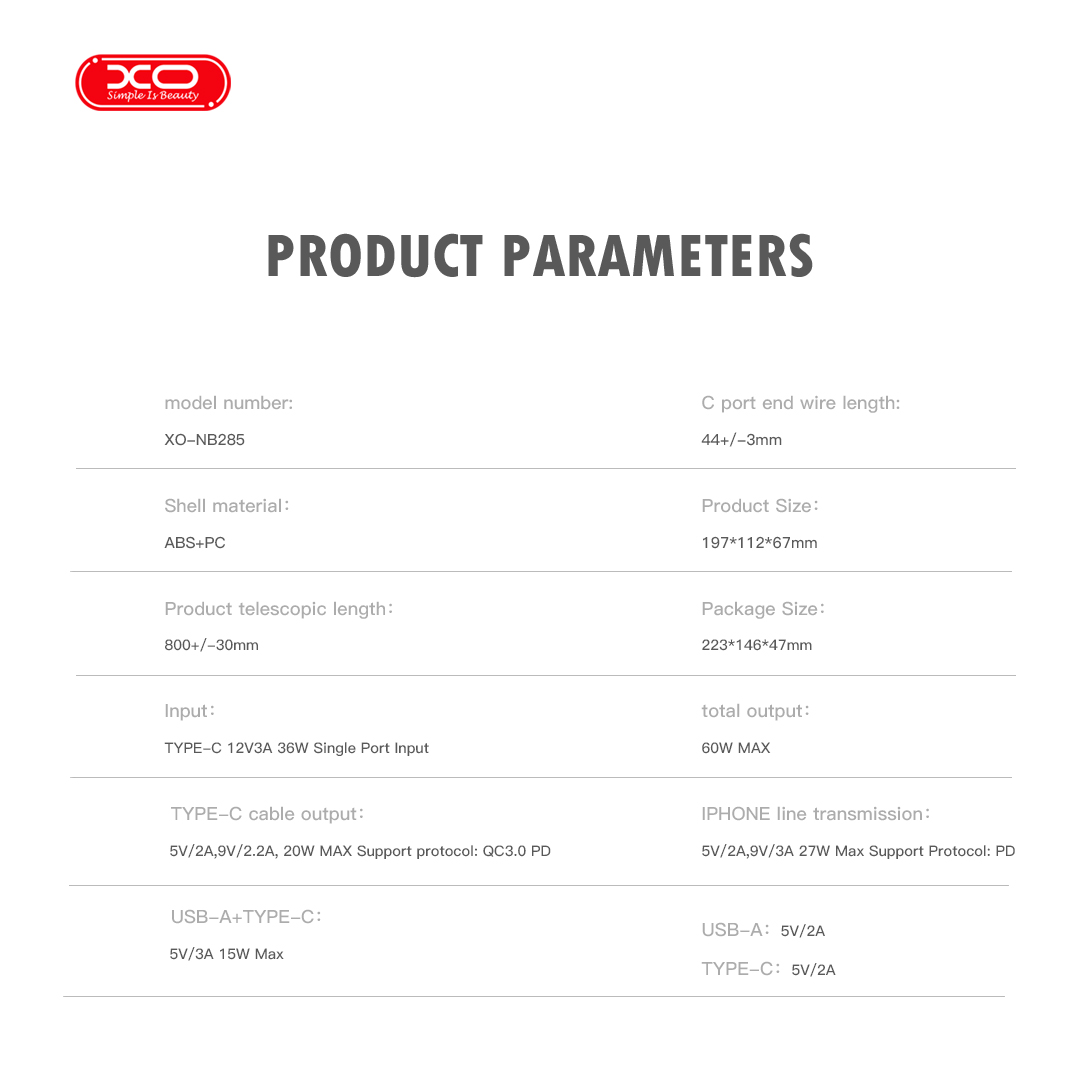 XO NB285 Docking Station με Αναδιπλούμενα Καλώδια 4-in-1