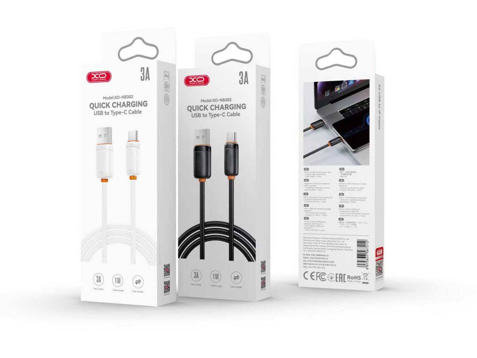 XO NB302 Καλώδιο Ταχείας Φόρτισης & Μεταφοράς Δεδομένων USB-A σε Type-C 3A Μαύρο 1m