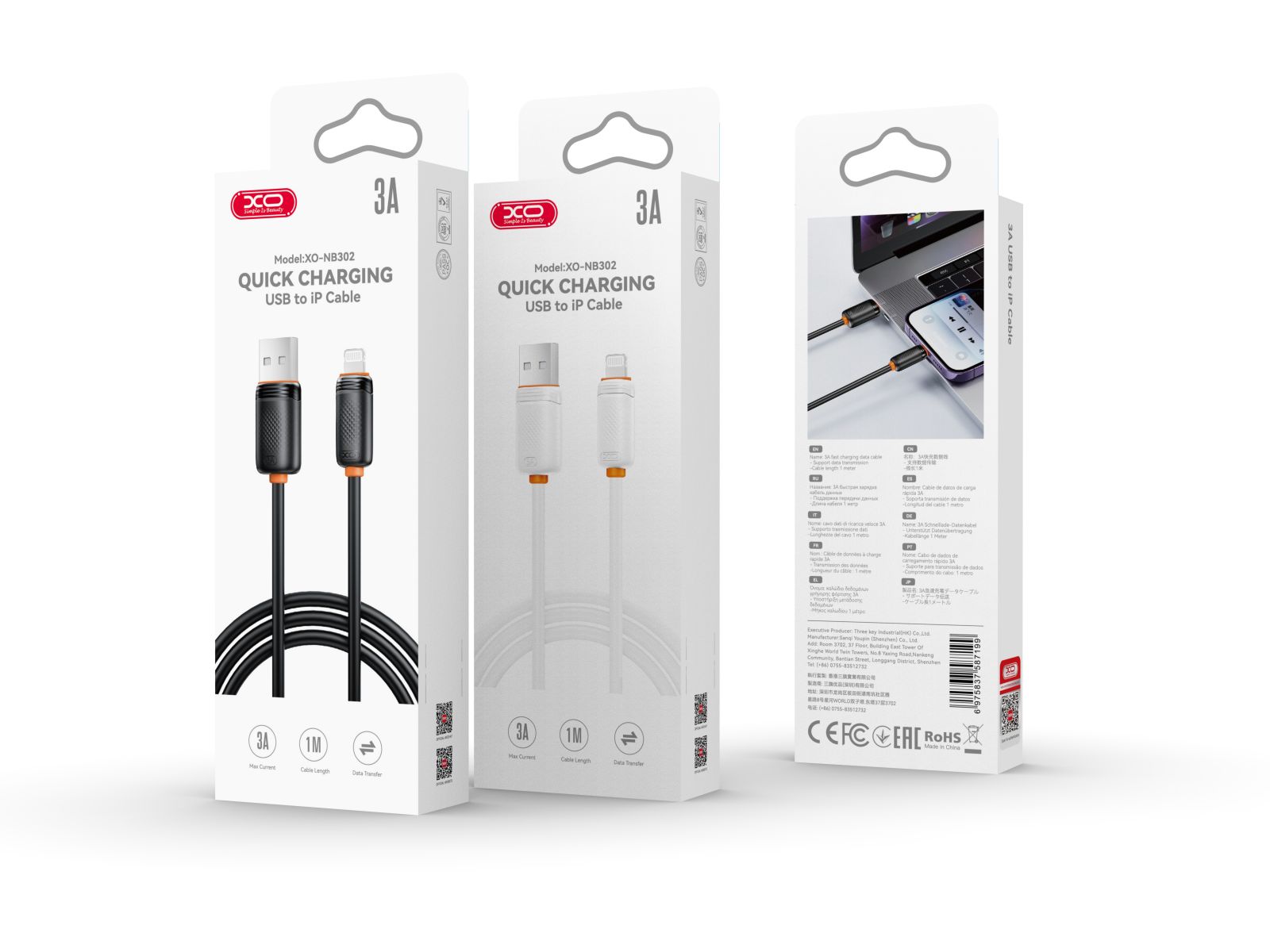 XO NB302 Καλώδιο Ταχείας Φόρτισης & Μεταφοράς Δεδομένων USB-A σε Lighting 3A Μαύρο 1m