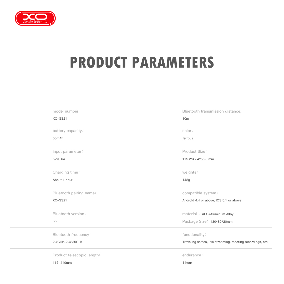 XO SS21 Πολυλειτουργικό Mini Bluetooth Selfie Stick 4 σε 1