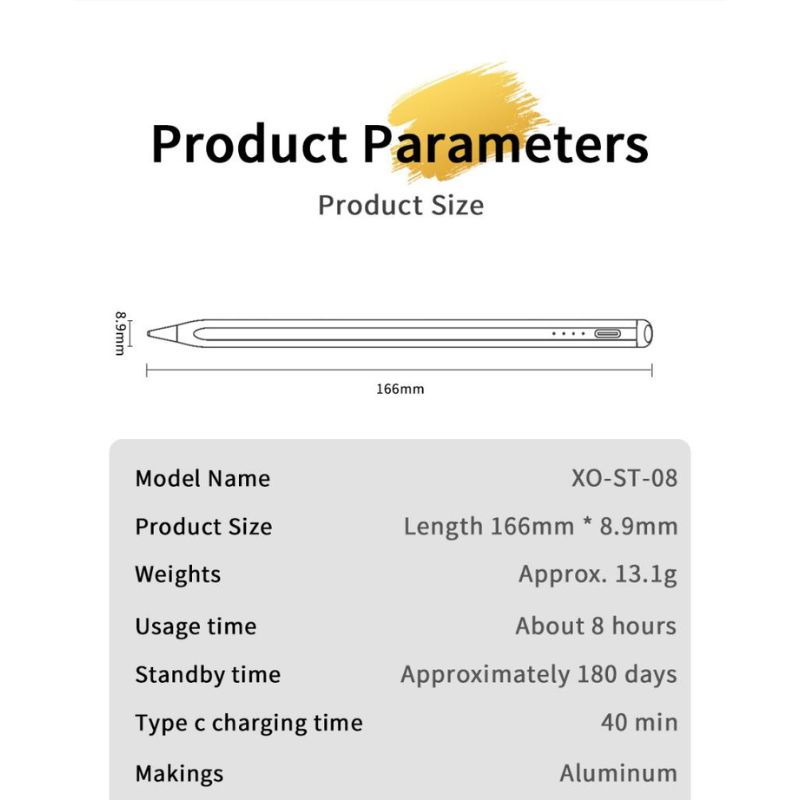 Λειτουργίες: Αντι-λάθος αγγίγματος, αισθητήρας πίεσης κλίσης, αυτόματη απενεργοποίηση μετά από 5 λεπτά αδράνειας, μαγνητική προσκόλληση