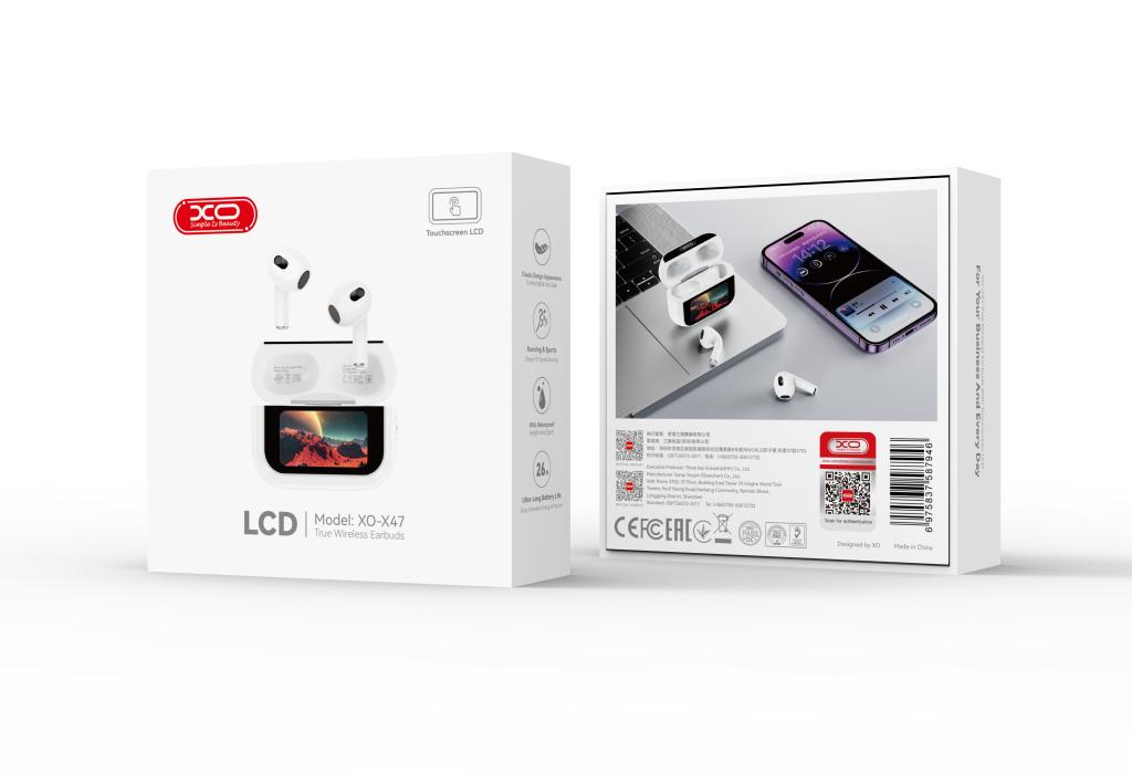 XO X47 Smart TWS Ακουστικά 4ης Γενιάς με Οθόνη (Λευκά)