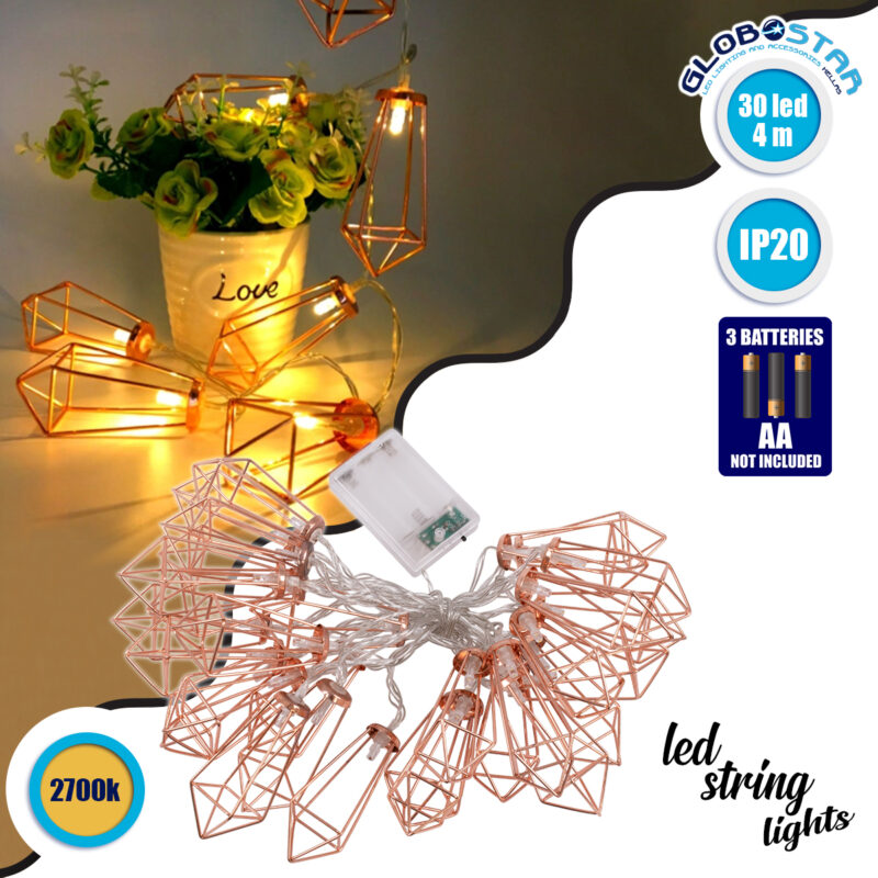 79805 Διακοσμητική Γιρλάντα Bronze Cone 4 Μέτρα με Διακόπτη On/Off – 30 LED 3W με Μπαταρίες 3xAA & Διάφανο Καλώδιο IP20 Θερμό Λευκό 2700K Μ4m
