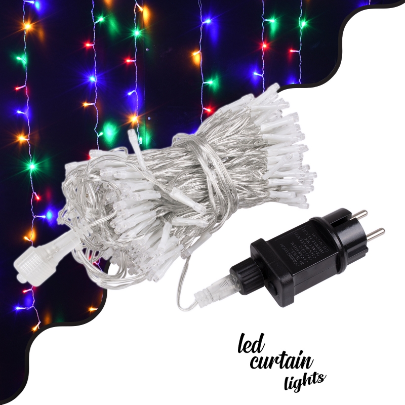 85802 Διακοσμητική Κουρτίνα 3 x 2 Μέτρα με Controller 8 Προγραμμάτων Φωτισμού – Επεκτεινόμενη 240 LED 6W AC 230V με Διάφανο Καλώδιο & EU Πρίζα IP20 Πολύχρωμο RGB Μ3 x Υ2m